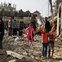 (Photo:Children scan the skies after an Israeli strike on a house in Rafah in southern Gaza. Credit:Hatem Khaled/Reuters)
