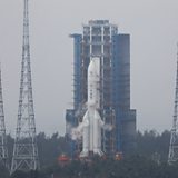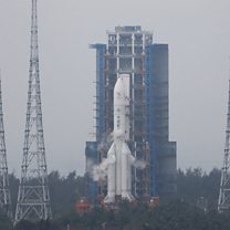 (Picture:The Chang'e 6 lunar probe and the Long March-5 Y8 carrier rocket combination on the launch pad in China's Hainan province on 3 May, 2024. Credit: REUTERS)
