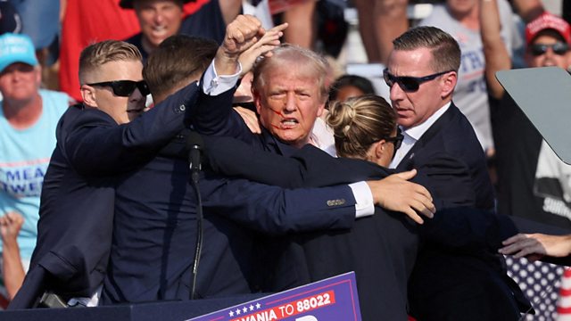 Donald Trump has survived an assassination attempt at a rally in Pennsylvania. Security agents rushed to protect the former US president after gun shots were heard, before he was hurried off stage with blood on his face. In a social media post, Mr Trump said a bullet had pierced his ear.