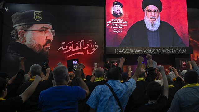 The leader of the Iranian-backed Lebanese group Hezbollah has said the response to the Israeli assassination of a senior commander in Beirut is coming. Also on the programme: the UK has seen the worst civil unrest for more than a decade; and, new works by the mysterious artist Banksy have been popping up all over London.