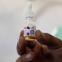 (Photo: A nurse holds a vial containing vaccine at Nasser hospital in the southern Gaza Strip on 31 August 2024. Credit: HAITHAM IMAD/EPA-EFE/REX/Shutterstock)