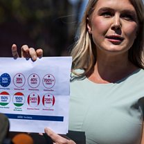 (Photo: White House Press Secretary Karoline Leavitt responds to questions from the news media during a briefing outside the West Wing of the White House. Credit: Shawn Thew/EPA-EFE/REX/Shutterstock.
