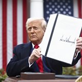 (Photo: Donald Trump in Rose Garden implementing new recipricol tariffs. Credit: Jim Lo Scalzo/EPA-EFE/REX/Shutterstock)