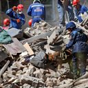 (Photo:Rescuers with a service dog look for residents, who could still be under rubber of a destroyed residential building, Kyiv, Ukraine. Credit: Alina Smutko/REUTERS.)