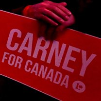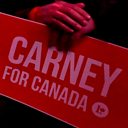 (Photo: A Liberal Party supporter holds a sign, Ottawa, Canada, 28 April 2025; Credit: Reuters)