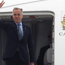 (Photo: PM Mark Carney waves as he boards his plane for the US, in Ottawa, Canada, 5 May 2025; Credit: Reuters)