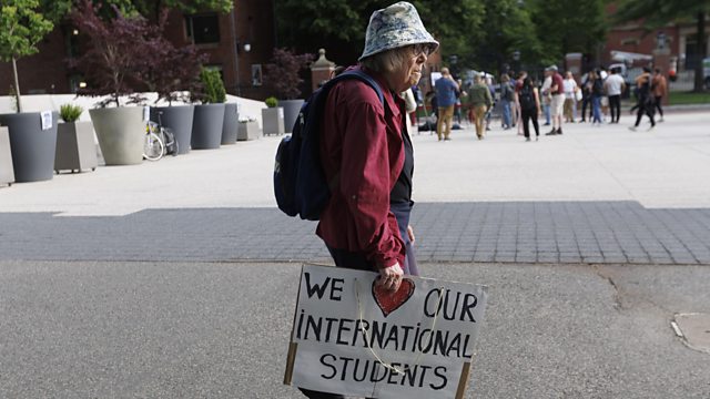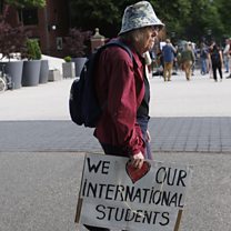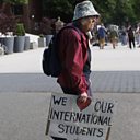 (Photo: A supporter with a sign reading 'We Love Our International Students" ; Credit: EPA-EFE/Shutterstock)