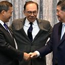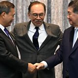 (Photo: Cambodia's PM Hun Manet (L), Thailand's acting PM Phumtham Wechayachai (R) and Malaysia's PM Anwar Ibrahim (C), Malaysia, 28 July 2025; Credit: EPA/Shutterstock)