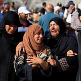 (Mourners react during the funeral of Palestinians killed, in what the Gaza health ministry say was Israeli fire near a distribution site in Rafah, at Nasser hospital in Khan Younis, in the southern Gaza Strip. Credit: Hatem Khaled/Reuters)