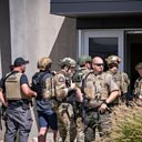 (Photo: First responders stand outside the doorway of the Nuvi building following the shooting of Charlie Kirk, the CEO and co-founder of the conservative youth organization Turning Point USA. Credit: Marielle Scott/EPA)