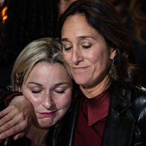 (Photo: Lauren Hersh, National Director of World Without Exploitation, comforts Jeffrey Epstein abuse survivor Danielle Bensky at the Rayburn House Office Building in Washington, DC. Credit: Luke Johnson/EPA).