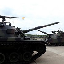 (Photo: Commissioning ceremony for Taiwan's first battalion of M1A2T Abrams tanks in Hsinchu. Yi-Chin Lee/Reuters)