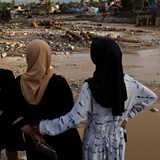 (Photo: Local residents observe an area hit by deadly flash floods following heavy rains in Padang; Credit: Reuters)