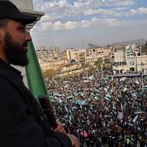 (Photo: A general view shows hundreds of people gathered in Al-Assi Square; Credit: EPA/Shutterstock)
