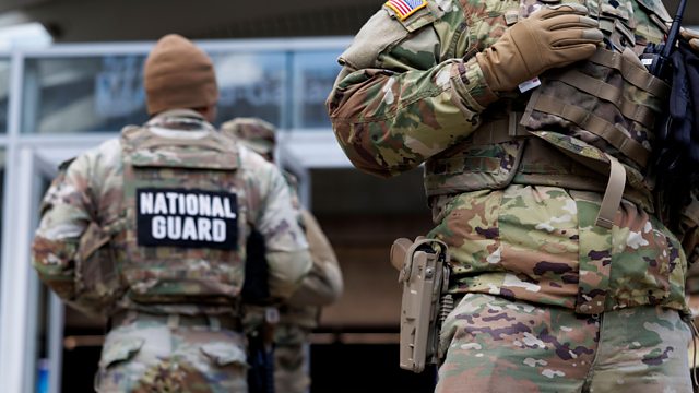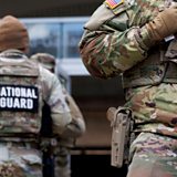 (Photo: National Guard members stand on deployment in northeast Washington; Credit: Will Oliver/ EPA/Shutterstock)