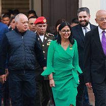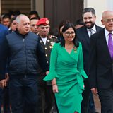 (Photo: Venezuela's Defence Minister Vladimir Padrino Lopez, Interior Minister Diosdado Cabello, interim President Delcy Rodriguez; Credit: Marcelo Garcia/