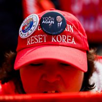 (Photo: A far-right protester shouts a slogan to support former South Korean President Yoon Suk Yeol, before a bus carrying him arrives for a first court. Credit: Soo-hyeon Kim/Reuters).