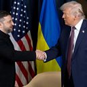 (Photo: Ukraine's President Volodymyr Zelenskiy and U.S. President Donald Trump shake hands; Credit: Reuters)