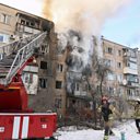 (Photo:Ukrainian rescuers work at the site of a drone strike on a residential building in Kharkiv, northeastern Ukraine. Credit: Sergey Kozlov/EPA