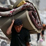 (Picture: A Palestinian makes his way with belongings as he flees his home, after Israeli air strikes, in the northern Gaza Strip. Credit: Reuters)