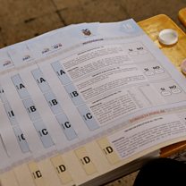 (IMAGE: Ballots are placed on a table during a referendum to decide whether to allow the return of foreign military bases, which Ecuador’s President Daniel Noboa says are central to fighting organized crime, and whether they back convening an assembly to rewrite the constitution, at a polling station in Quito, Ecuador November 16, 2025 / CREDIT: Reuters / Karen Toro)