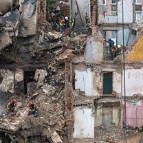(IMAGE: Ukrainian rescuers work at the site of a Russian strike on a high-rise residential building in Ternopil, western Ukraine, 21 November 2025. At least 31 people were killed, including 6 children, and 94 others, including 18 children, were injured in Ternopil after Russian forces launched overnight strikes across Ukraine on 19 November / CREDIT: Mandatory Credit: Photo by MAXYM MARUSENKO/EPA/Shutterstock)