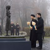 (Photo: Zelensky and his wife place wheat sheaves at statue. Credit: EPA/Shutterstock)