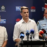 (IMAGE: (L-R) NSW Minister for Police and Counter-terrorism Yasmin Catley, NSW Premier Chris Minns and NSW Police Commissioner Mal Lanyon hold a press conference following a shooting incident at Bondi Beach, in Sydney, New South Wales (NSW), Australia, 14 December 2025 / CREDIT: Dean Lewins / EPA / Shutterstock)
