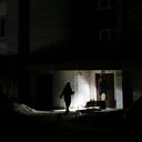 (Photo: A person with a flashlight in a dark street during a power cut in Lviv, Ukraine. Credit: Mykola Tys, EPA/Shutterstock)