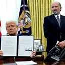 Photo: U.S. President Donald Trump holds an executive order about tariffs increase, flanked by U.S. Commerce Secretary Howard Lutnick, in the Oval Office of the White House in Washington, D.C., U.S., February 13, 2025. Credit: REUTERS/File Photo