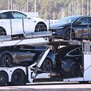 (Photo: Tesla cars stand on a trailer as they are transported at Tesla Gigafactory building in Gruenheide, near Berlin, Germany, 03 April 20. Credit: CLEMENS BILAN/EPA-EFE/REX/Shutterstock)