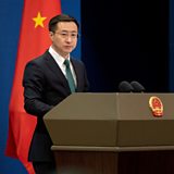 (Photo: China's Foreign Ministry spokesperson Lin Jian holds a press conference in Beijing, China, 09 April 2025. Credit: JESSICA LEE/EPA-EFE/REX/Shutterstock)