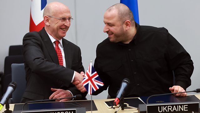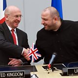 (Photo: British Secretary of State for Defence John Healey (L) and Ukrainian Defense Minister Rustem Umerov shake hands during the Ukraine Defence Contact Group meeting at NATO Headquarters in Brussels, Belgium, 11 April 2025. Credit: OLIVIER HOSLET/EPA-EFE/REX/Shutterstock)