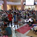 Photo: Evacuees at a Thai government evacuation centre, where they have been relocated due to clashes between Thai and Cambodian soldiers along the disputed border. 25 July 2025/ EPA