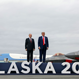 Photo: US President Donald Trump (R) and Russian President Vladimir Putin pose on the podium on the tarmac after they arrived to attend a meeting at Joint Base Elmendorf-Richardson in Anchorage, Alaska, USA, 15 August 2025. Credit: Photo by GAVRIIL GRIGOROV/SPUTNIK/KREMLIN POOL/POOL/EPA/Shutterstock