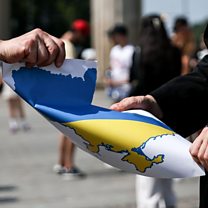 (Picture: Activists wearing masks of US President Donald J. Trump (L) and Russian President Vladimir Putin (R) tear a paper map of Ukraine during a protest called 'No dirty deals at the expense of Ukraine' in Berlin, Germany, 14 August 2025. Credit: FILIP SINGER/EPA/Shutterstock)