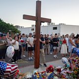 (Picture: A supporter of Charlie Kirk holds a large wooden crucifix as people mourn following the fatal shooting of conservative activist. Credit: REUTERS/Thomas Machowicz TPX IMAGES OF THE DAY)