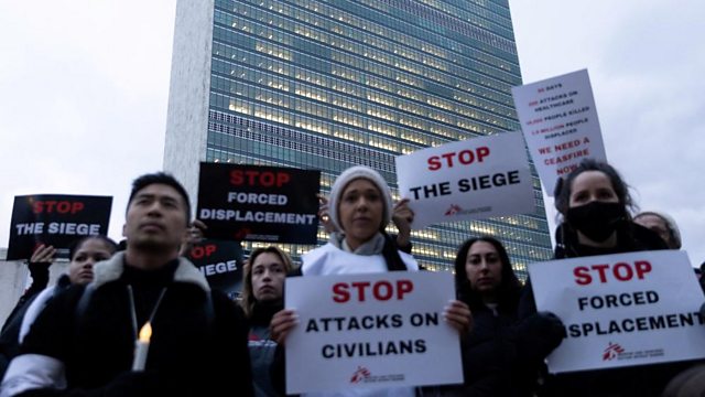 Photo: People affiliated with Doctors Without Borders/Medecins Sans Frontieres (MSF) hold a vigil outside United Nations headquarters to honor colleagues and others who have been killed during the war in Gaza; in New York City, U.S. (December 6, 2023. REUTERS/Jeenah Moon)
