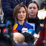 (Photo: Moldovan President Maia Sandu speaks after voting at a polling station during the country's parliamentary elections in Chisinau, Moldova, September 28, 2025. Credit: REUTERS/Vladislav Culiomza)