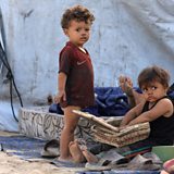 (Photo: Displaced Palestinian children shelter on the side of a road, after Hamas agreed to release hostages and accept some other terms in a US plan to end the war, in the central Gaza Strip, October 4, 2025. Credit: REUTERS)