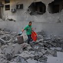 (Picture: A paramedic carries a stretcher as Palestinians inspect the damage at a residential neighbourhood in Gaza City on October 4, 2025. Credit: REUTERS/Ebrahim Hajjaj)