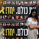 (Photo: A woman walks past banners with images of hostages kidnapped during the deadly October 7, 2023 attack. CREDIT: REUTERS/Stoyan Nenov)