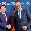Photo:U.S. Secretary of State Marco Rubio and Germany's Chancellor Friedrich Merz shake hands in Munich, Germany February 13, 2026 during the Munich Security Conference. Credit: Alex Brandon/ Reuters