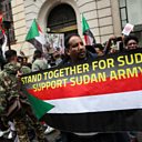 (Photo: People gather to protest against the conflict in Sudan, on the day of the two-year anniversary of the conflict, as the London Sudan conference takes place. Credit: REUTERS/Isabel Infantes)