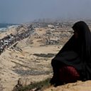 (Photo: A woman observes, as displaced Palestinians, flee southward after Israeli forces ordered residents of Gaza City to evacuate to the south, in the central Gaza Strip, 17 September, 2025. Credit: REUTERS/Mahmoud Issa)