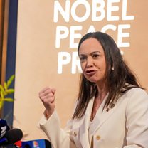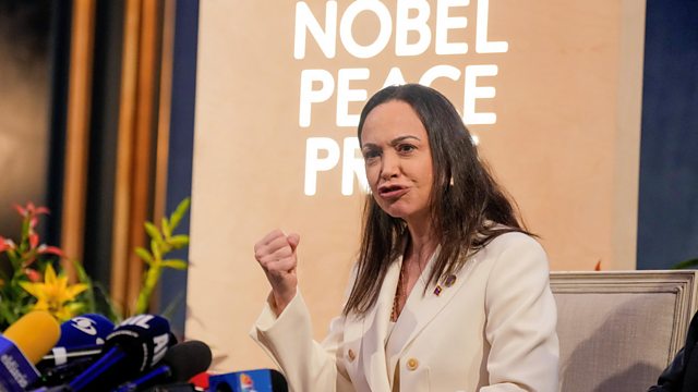The Venezuelan opposition leader, María Corina Machado, has said cutting the cash flow to the government is key to its removal. She has insisted Nicolas Maduro is on his way out. Machado, who has been in hiding for months, told the BBC that she knows "exactly the risks" she is taking by travelling to Norway to collect her Nobel Peace Prize. We hear the interview she gave to the BBC and speak to our reporter.