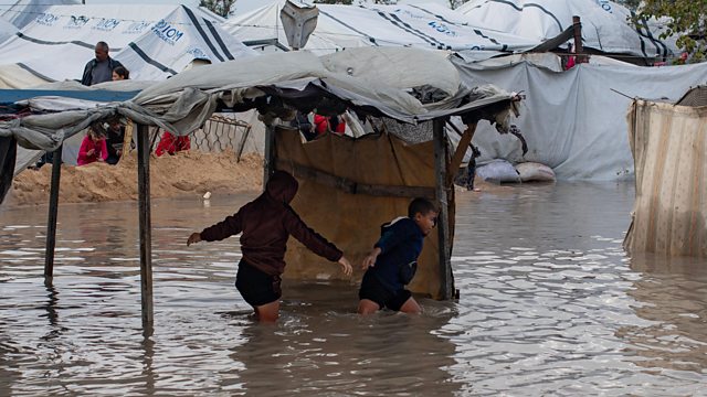 Hundreds of thousands of displaced Gazans face flooding after torrential rain swept across the Gaza Strip on Thursday. It means families that are already displaced by two years of war, are being displaced again. We hear from residents in Gaza and speak to our correspondent.