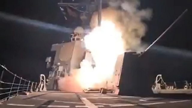(Photo: The US defence department posted a short video that appears to show a missile being launched from a military vessel. Credit: US Department of Defense)