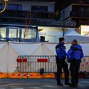 (Photo: Police officers stand guard in front of the "Le Constellation" bar, after a fire and explosion during a New Year's Eve party in Switzerland. Credit: REUTERS/Denis Balibouse)