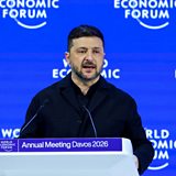 (Photo: Ukrainian President Volodymyr Zelenskiy speaks at the 56th annual World Economic Forum (WEF) meeting in Davos, Switzerland, January 22, 2026. Credit: Denis Balibouse/Reuters)
